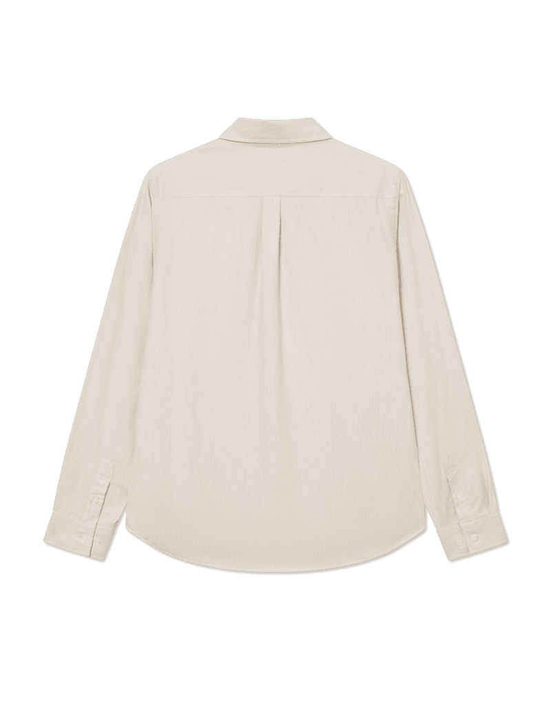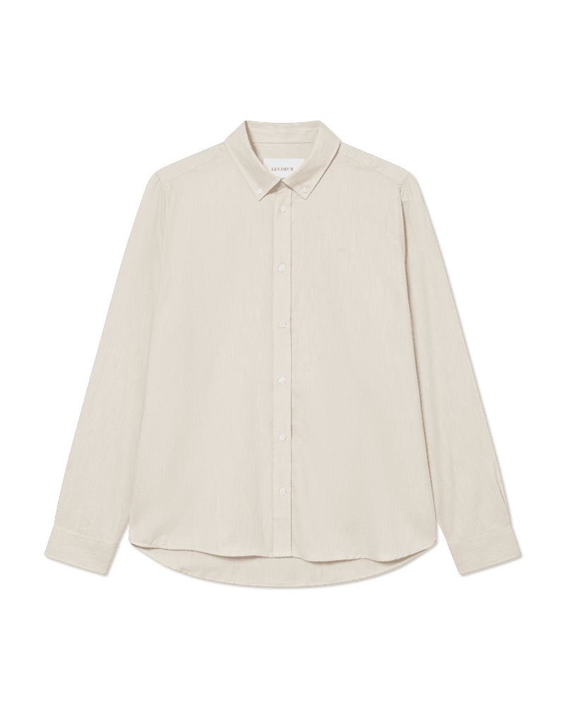Les Deux Desert Reg Shirt i farven Ivory er en stilren og alsidig skjorte, der kombinerer klassisk design med moderne detaljer. Fremstillet i 100 % børstet bomuld tilbyder skjorten både komfort og varme. Den lyse, varme off-white farve giver et tidløst og alsidigt look, der nemt kan matches med både jeans og chinos. Button-down kraven og kontrastknapperne tilføjer et sofistikeret touch, mens det tonale broderede Encore-logo på brystet giver et subtilt brandudtryk. Regular fit sikrer en afslappet pasform, der giver bevægelsesfrihed hele dagen. Denne skjorte er ideel til både afslappet og semi-formelt brug og kan styles både med og uden jakke.