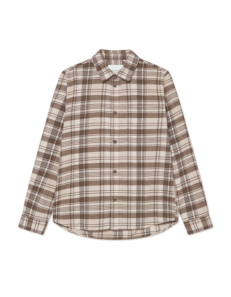 Les Deux Lennon Check Overshirt i farven Irish Cream er en stilfuld og alsidig overshirt, der kombinerer klassisk design med moderne detaljer. Fremstillet i 100 % bomuldsflanell tilbyder overshirten både komfort og varme. Den lyse beige farve med subtile hvide striber giver et tidløst og alsidigt look, der nemt kan matches med både jeans og chinos. Button-down kraven og brystlommen tilføjer et sofistikeret touch, mens de lange ærmer med manchetter og knappestolpe giver et klassisk udtryk. Regular fit sikrer en afslappet pasform, der giver bevægelsesfrihed hele dagen. Denne overshirt er ideel som let jakke eller ekstra lag i overgangsperioder og kan styles både med og uden jakke.
