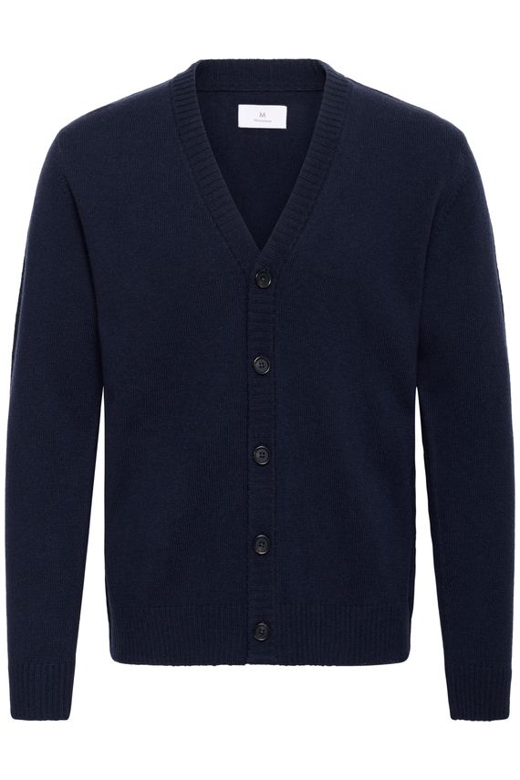 MAalpin Cardigan 30208827-194011 i farven Dark Navy er en klassisk og raffineret cardigan, der byder på en luksuriøs lammeuldskvalitet (merino). Med sin dybe marineblå nuance fungerer den som et alsidigt og elegant lag i garderoben. Cardiganen har en V-udskæring og knaplukning foran, hvilket giver et stilrent og fleksibelt udtryk. Ribkanterne ved ærmer og bund skaber struktur og definition, mens snittet med lige silhuet sikrer et rent og tidløst look. Brug den over en skjorte på kontoret, eller kombinér den med T-shirt og jeans til weekendbrug – den gambler mellem formelt og afslappet med lethed.