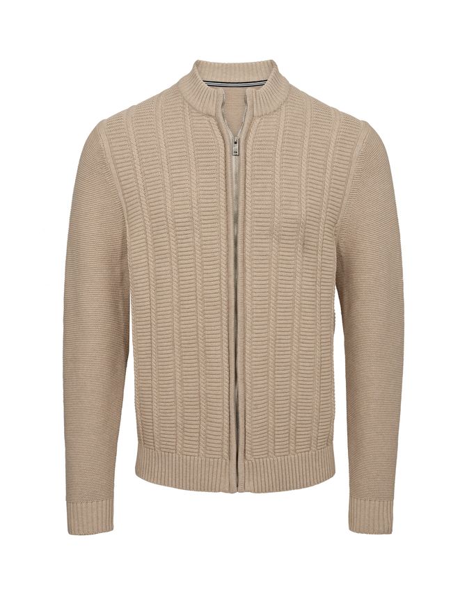 Cardiganen er udstyret med en lynlåslukning, hvilket giver et praktisk og moderne udseende.