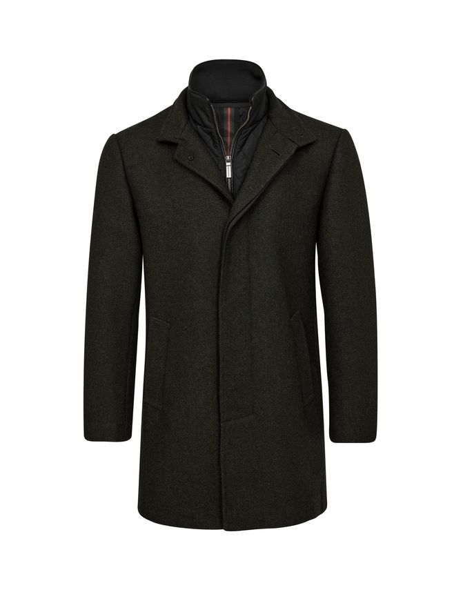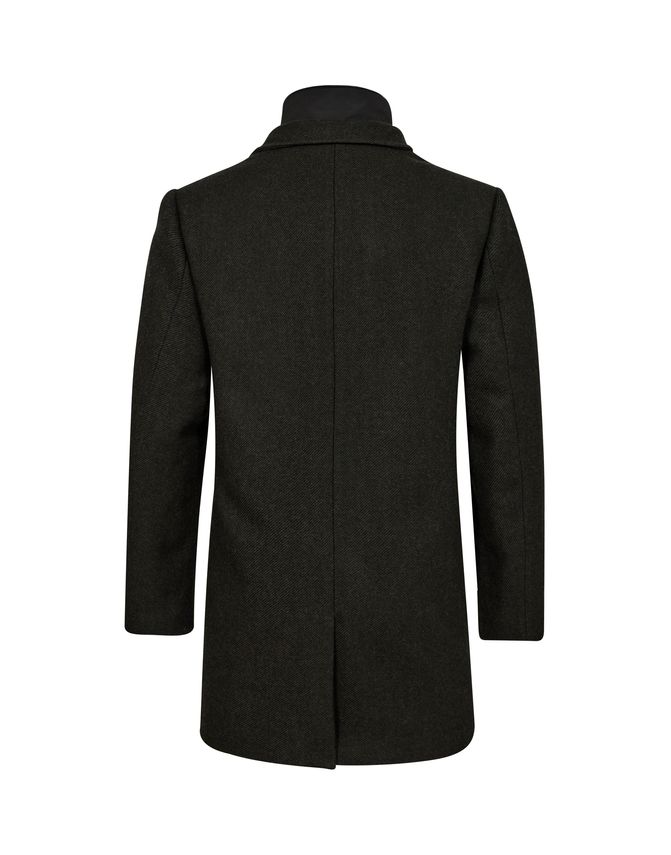Gino Marcello Mens Wool Coat Modern Fit 1500004-780 Army er en robust og stilfuld overtøjsjakke, som typisk bruges i de kølige måneder. Jakken er lavet af en uldblanding, nøjagtigt designet til at holde dig varm uden at virke tung. Farven Army giver den et råt og markant udtryk, som fungerer godt med neutrale og jordfarver. Modern fit-pasformen sidder tættere på kroppen end et klassisk snit, men giver stadig plads til lag under, hvilket gør den både praktisk og flatterende. Knappelukningen med skjult knappeliste hjælper med at beskytte mod vind, og de store sidelommer er perfekte til kolde hænder eller småting. Jakken er ideel til både hverdagsbrug og mere formelle sammenhænge, hvor du ønsker at være godt klædt på uden at gå på kompromis med stil.