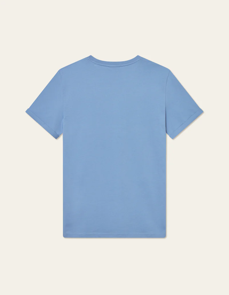 Designet inkluderer ribkanter ved halsen og en label-detalje nederst på siden, som hjælper med at bevare struktur og finish selv ved hyppig brug. Allure Blue giver t-shirten en kølig blå nuance, der kan fungere som et farvepunkt i et ellers neutralt look, eller tones ind med andre blå og grå nuancer for harmoni i outfittet.