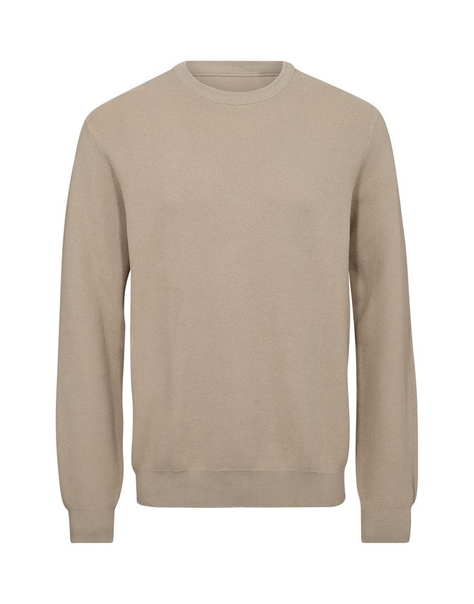 Striktrøjen er udstyret med en klassisk rund halsudskæring, hvilket giver et tidløst og professionelt udseende.