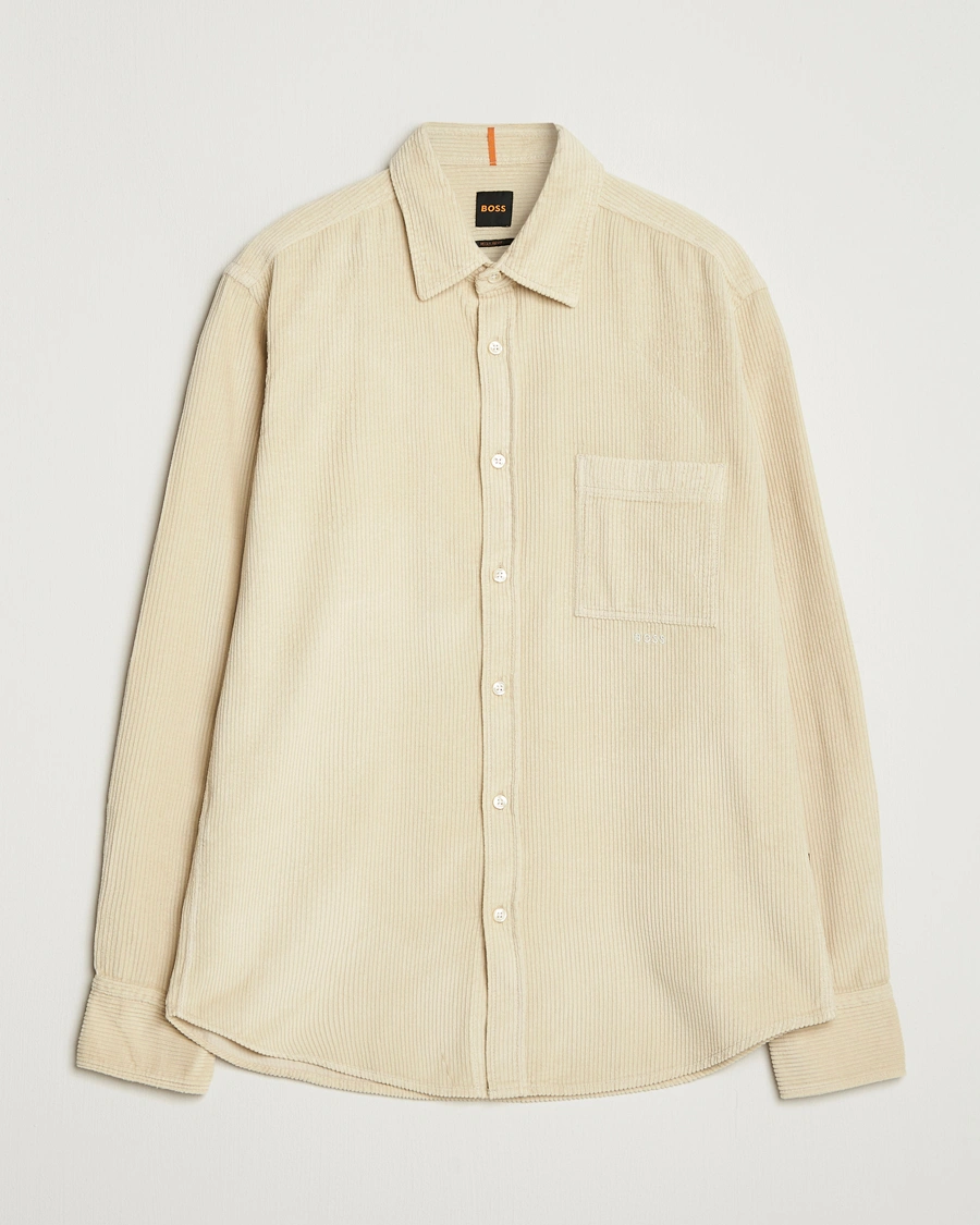 BOSS Relegant Corduroy Shirt – 50548976-271 Light Beige er en raffineret skjorte, der kombinerer en blød corduroy-kvalitet med et klassisk snit. Den varme beige nuance gør den let at style med både lyse og mørke farver, hvilket giver fleksibilitet i garderoben. Skjorten har en button-down krave, gennemgående knaplukning og én brystlomme – detaljer som giver et tidløst udtryk. Diskrete logo-stikninger tilføjer et subtilt brandelement uden at overmande designet. Med en regular fit-pasform sikrer skjorten komfort og bevægelsesfrihed, hvilket gør den ideel til både hverdag og lidt mere polerede outfits.