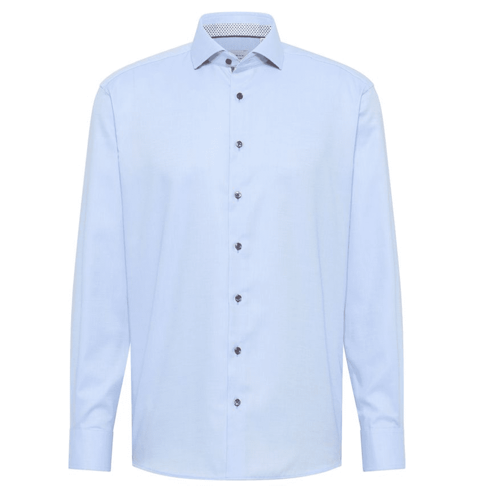Oplev elegancen med Eterna skjorte 8461 X94V-12 i Medium Blue, designet med både æstetik og funktion i fokus. Fremstillet i førsteklasses 100 % bomuld med non-iron-teknologi, sikrer denne skjorte et skarpt look hele dagen uden strygning.