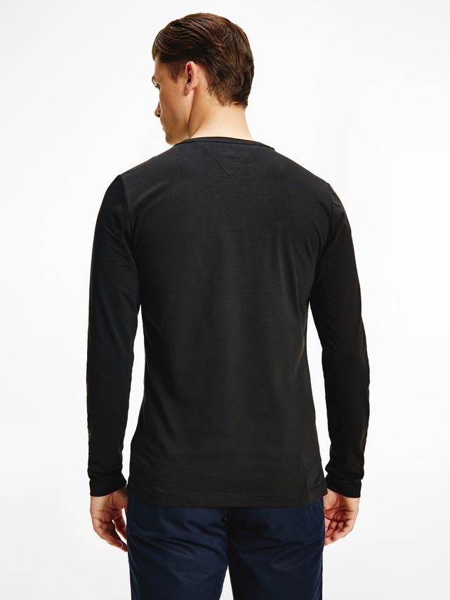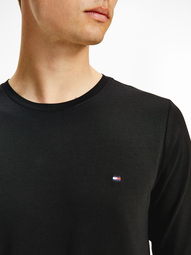 Tommy Hilfiger MW0MW10804-BDS i farven Black er en klassisk langærmet T-shirt, der kombinerer komfort med et stilrent design. Fremstillet i en blød og strækbar blanding af 96 % økologisk bomuld og 4 % elastan, tilbyder denne T-shirt både åndbarhed og bevægelsesfrihed. Den slim fit med rund hals giver en tætsiddende pasform, der fremhæver kroppens silhuet. Et diskret Tommy Hilfiger-logo er broderet på brystet, hvilket tilføjer et subtilt branddetalje. Denne T-shirt er ideel til lag-på-lag styling og kan nemt kombineres med jeans, chinos eller shorts for et afslappet og stilfuldt look.